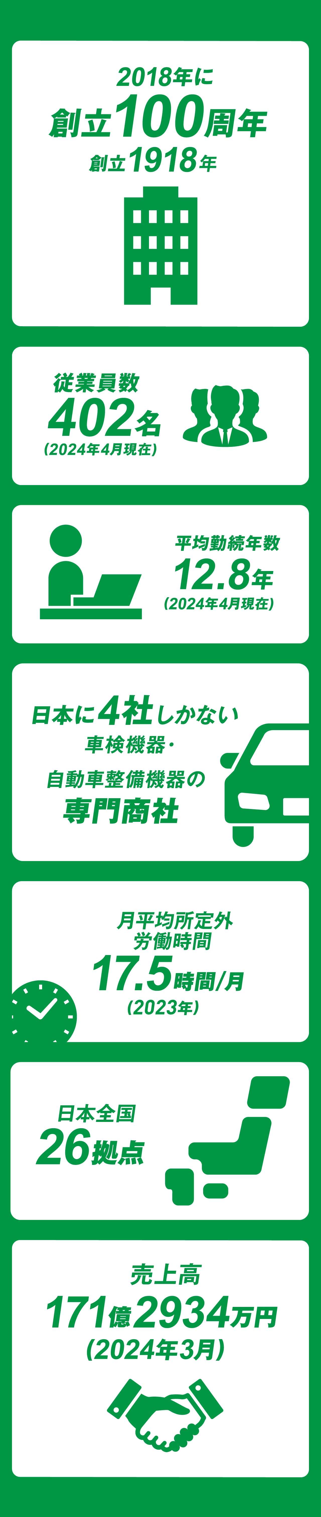 1918年(大正7年)の創立以来、『交通報國』の理念のもと、安全自動車は自動車産業の発展とともに歩み、「品質」「安全」「環境保全」の観点から車社会を支えてきました。長い歴史の中で、いかに社会情勢やシステムが変わることがあっても、企業理念は変わりません。自動車が安全に走るための点検・整備の環境を技術で支える。創立から100年の間、それが安全自動車のシゴトであり、この実直さこそが、ANZENらしさなのです。