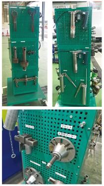洗車場美化について入庫の多いウイング車の車体上部の汚れを落としやすくするために壁面にキャットウォークを設置。車両の洗車作業を行いやすいよう、ホースを吊り下げ式にして劣化を防止。