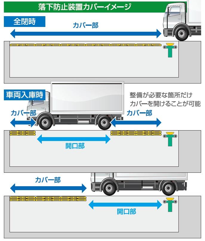 ・整備が必要な箇所だけカバーを開けることが可能 ・パネルは2枚重ねにすることが可能 ※落下防止装置上への乗り上げはできません