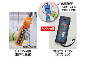 シンプル操作で、リフト受台のセットやシリンダーの左右移動が支持部を確認しながら簡単にできます。電波式リモコン(オプション)は充電ケーブルに取り付けたまま使用可能。操作対象リフトを識別する認証機能付きで安全性にも優れてます。