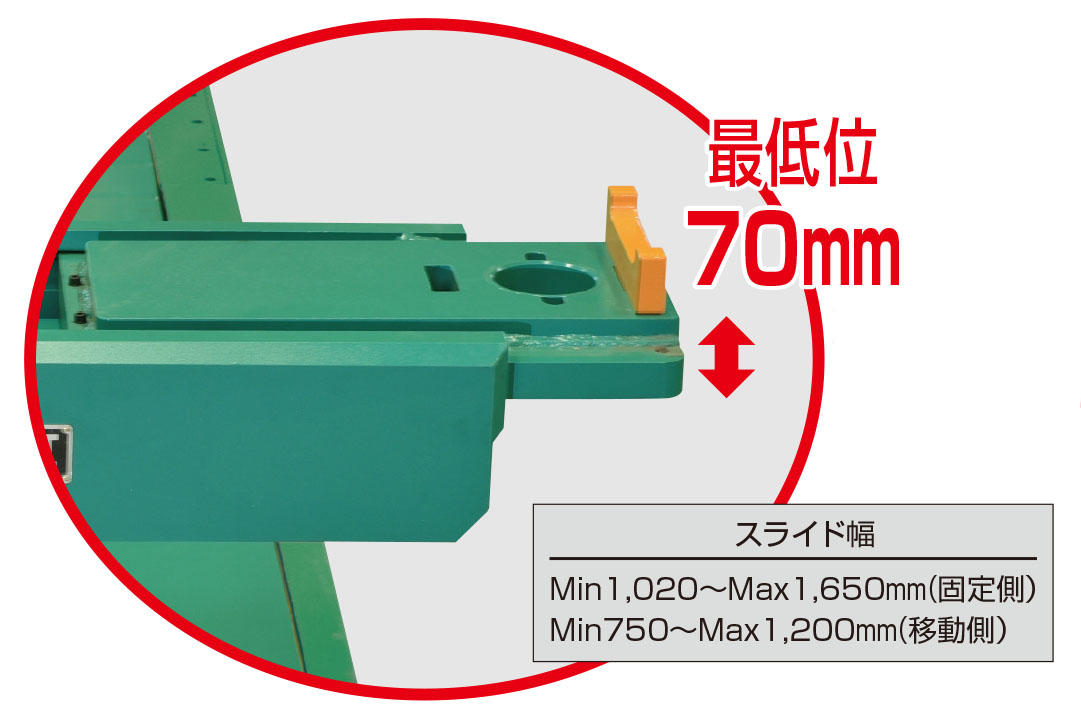 従来品と比較して薄型に。最低位70mm※で受台のスライドを可能にします。※アタッチメントなしの場合