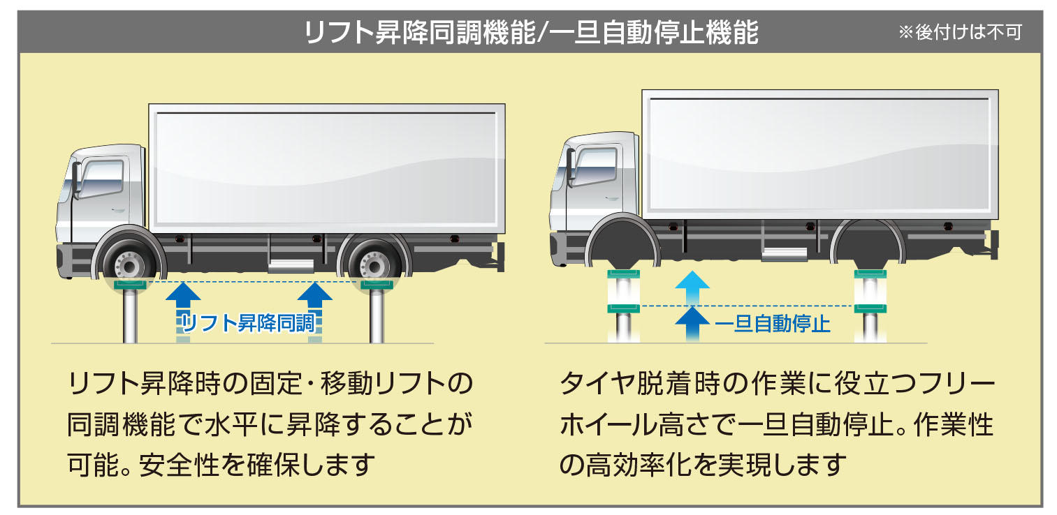 薄型化したスライドアームと進化したアタッチメントで対応可能車両が拡大。低床車や路線バスにも対応可能です。 スライドアームを電動化することにより、低い姿勢でのアタッチメント取り付けやスライド調整による作業負荷を軽減します。(TWPF30ND)